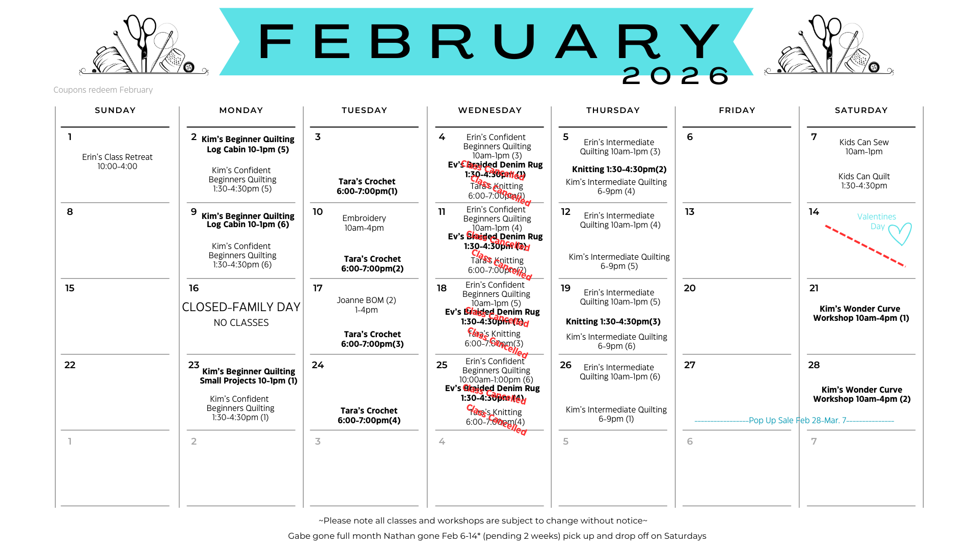 *Although it’s not mandatory, it is very much appreciated that you purchase your materials from our store so that we can continue to bring you fun and creative classes.